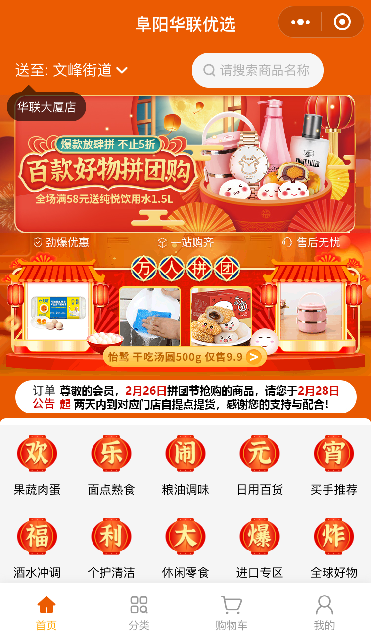 “阜陽(yáng)華聯(lián)優(yōu)選”小程序正式上線(xiàn)!2.26首期超級拼團大獲全勝!