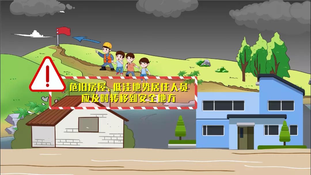 3:危舊房屋或低洼地勢居住人員,應及時(shí)轉移到安全地方。