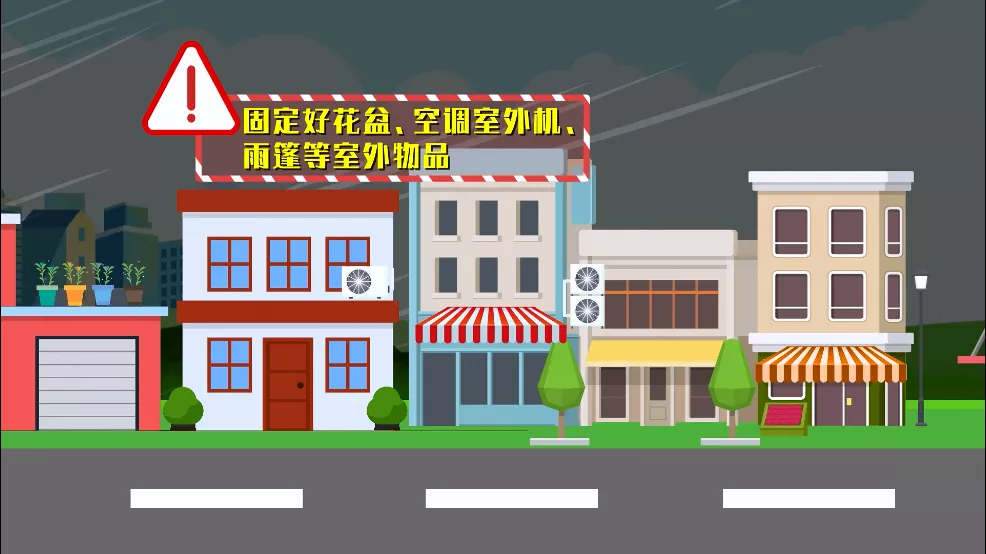 2:臺風(fēng)來(lái)臨之前,緊固易被風(fēng)吹動(dòng)的搭建物。
