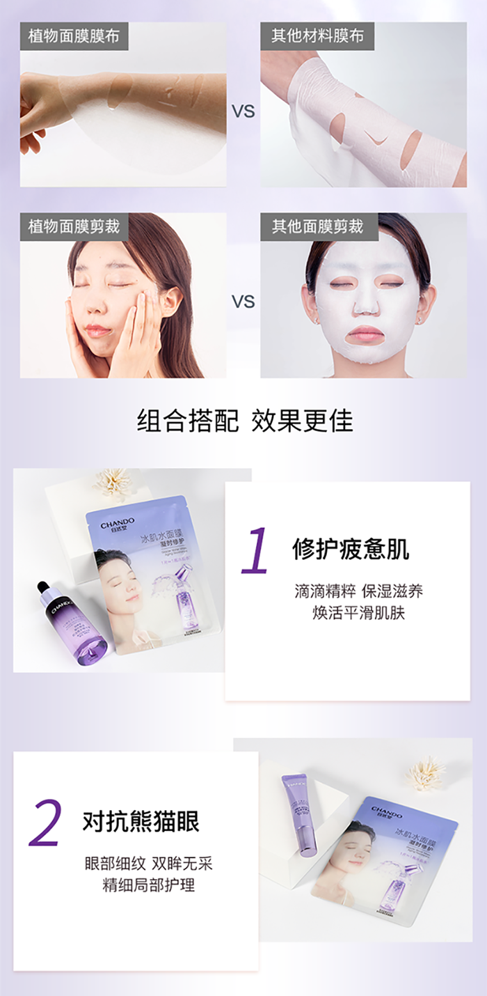 植物膜布,吸附力也大,適合干皮等肌膚,吸收后清洗,會(huì )感覺(jué)皮膚豐盈飽滿(mǎn),補水又提亮。