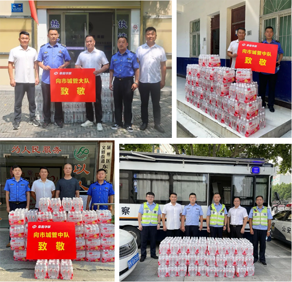 8月1日,驕陽(yáng)似火,酷暑難耐!阜陽(yáng)華聯(lián)給城區城管大隊、中隊、轄區交警送去清涼物資1萬(wàn)余瓶飲用水,致敬他們高溫下的堅守。