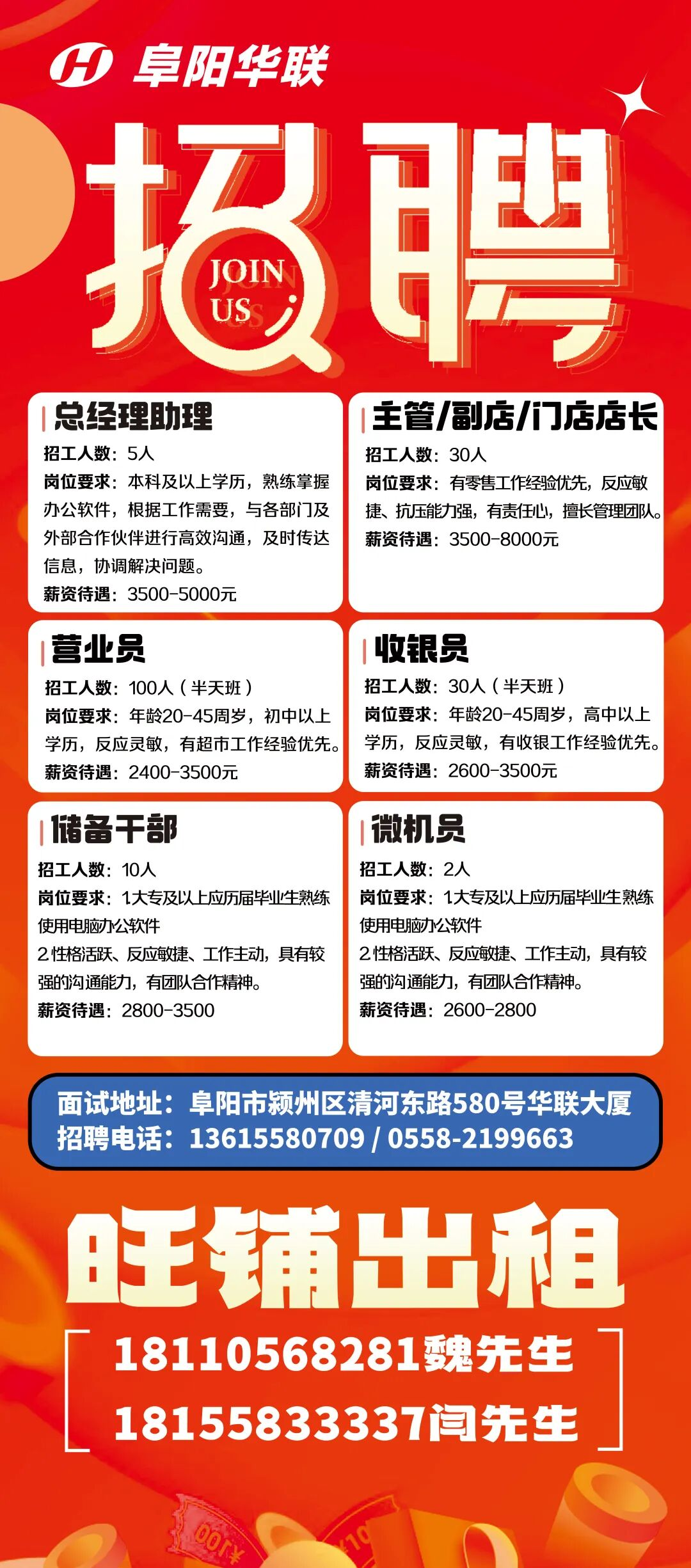 阜陽(yáng)華聯(lián)發(fā)布招聘公告