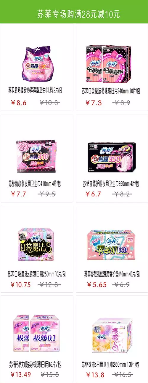 一:蘇菲專(zhuān)場(chǎng)購物滿(mǎn)28元立減10元