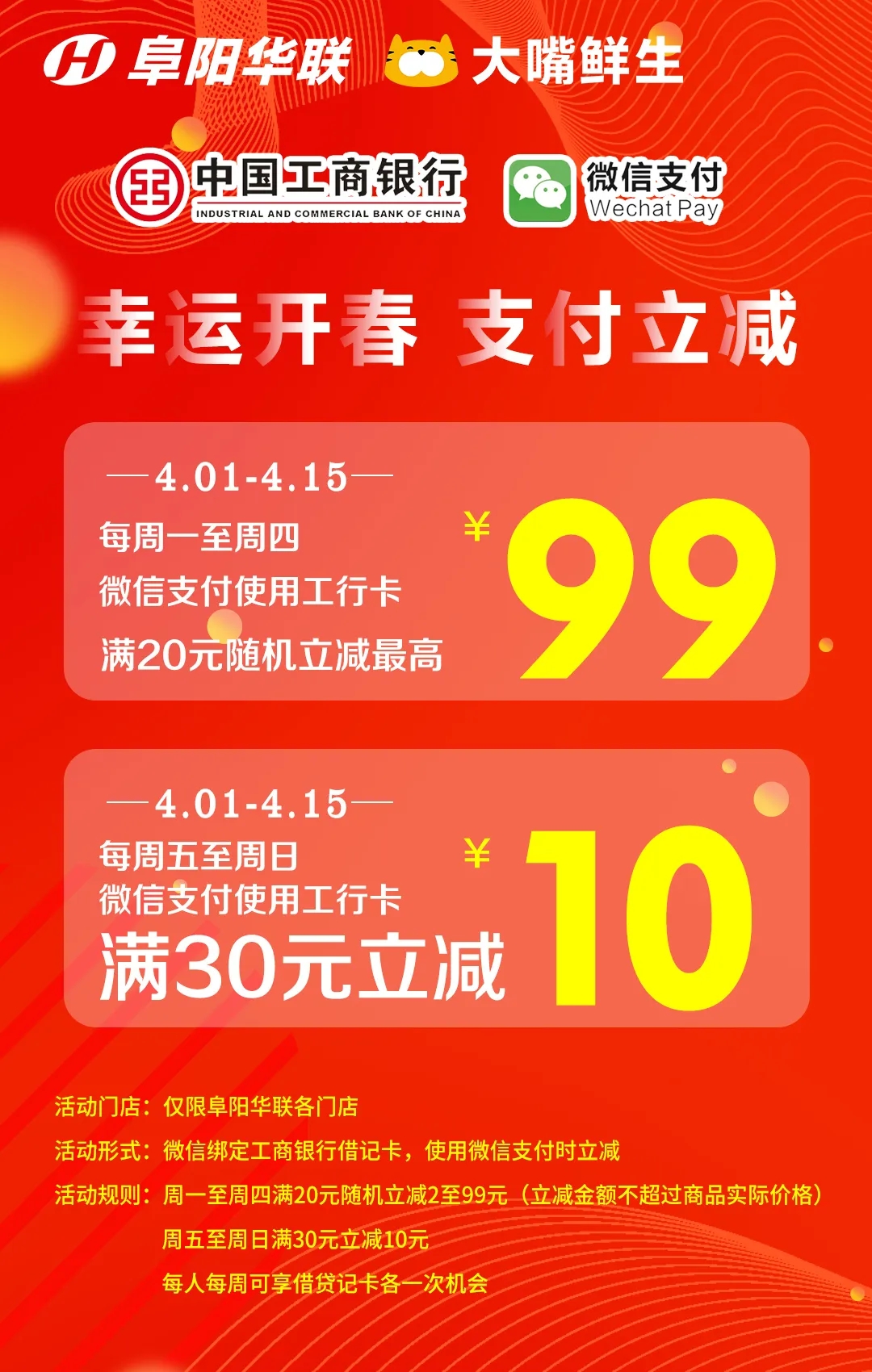 工商銀行攜手阜陽(yáng)華聯(lián)推出隨機立減特惠!