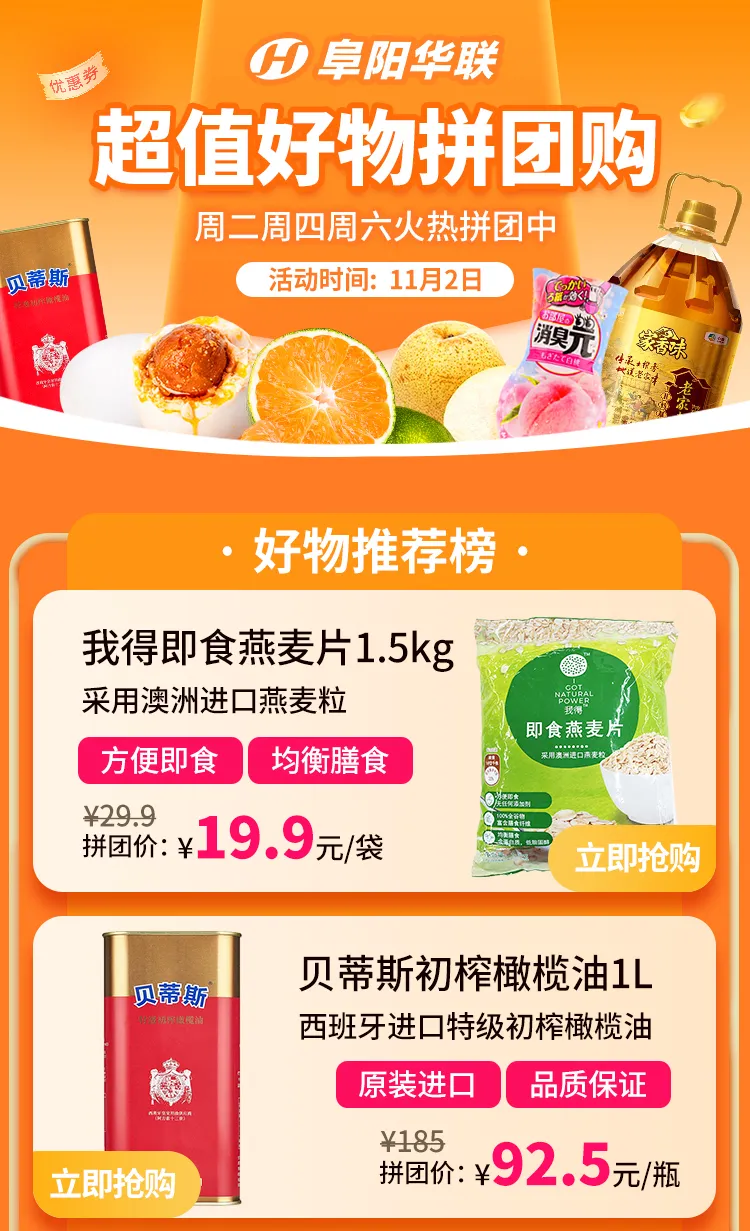 開(kāi)搶 | 11月2日阜陽(yáng)華聯(lián)優(yōu)選「好物拼團」,全場(chǎng)爆款!
